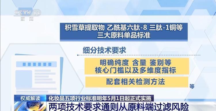 国家药监局日前首次发布一批化妆品行业标准,包括两项技术通则和三项原料单品标准,新标准将于明年5月1日起正式实施。标准主要规范了哪些内容?对消费者用妆安全有哪些保障?