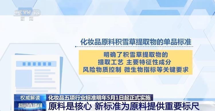 国家药监局相关负责人表示,化妆品原料的质量和安全直接影响化妆品的品质,标准可以引导原料生产企业提升原料质量,也能帮助企业精准筛选合格原料,有效减少产品安全风险。